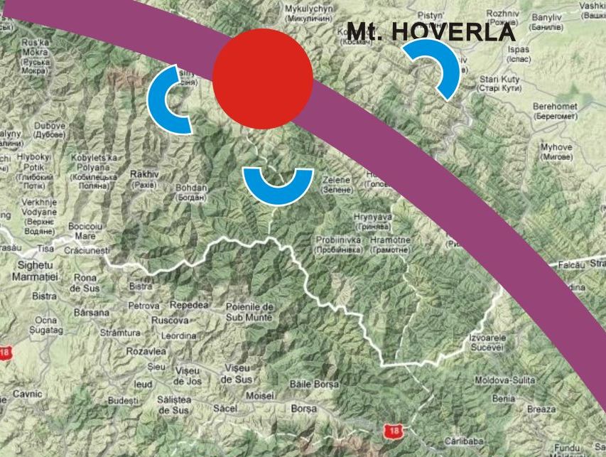 În nord-vestul Ucrainei, aproape de graniţa cu România, se află al treilea punct principal al vortexului anahatei planetare. Este o zonă destul de puţin cunoscută acum din punct de vedere ezoteric, însă era mult mai cunoscută în antichitate. În viitor se vor descoperi mai multe vestigii religioase în zonă. Unul dintre punctele de convergenţă cu banda energetică a anahatei planetare este Muntele Hoverla, acesta fiind cel mai înalt munte din Ucraina (2061m). Vârful acestui masiv are o structură asemănătoare tetraetrului (piramidă triunghiula regulată).